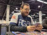 George Laporte just turned 18 years old 3 days ago and traveled here from Maryland to play in this weekend’s YCS. He’s running a Photon Deck featuring Galaxy-Eyes Photon Dragon in this weekend’s tournament, hoping it’ll bring him some Xyz-crushing victories. He has entered a few Regional and Local tournaments, but never before entered a YCS. “I’m looking forward to winning, and also being OTK’d. It’s really fun to see someone else’s combo pulled off to destroy me in one turn! It’s amazing!” Even though George gets excited about losing, he’s still hoping to win. His favorite monster is Hieratic Sun Dragon Overlord of Heliopolis, and he’s hoping it’ll bring him victory this weekend. Check out George holding it up!