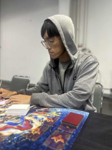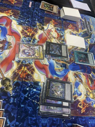 Aviles won the die roll and chose to go first! He started by Normal Summoning K9-04 Noroi and activating its effect, but Phan Chained the effect of Ash Blossom & Joyous Spring. Next, Aviles activated the effect of K9-66a Jokul, Special Summoning it and K9-17 Izuna from hand and sending K9-ØØ Lupis to the Graveyard. On resolution, Phan activated the effect of Dracotail Faimena, using Ghost Belle & Haunted Mansion, Dracotail Phryxul, and Dracotail Faimena in his hand to Fusion Summon Dracotail Arthalion! He Set Ketu Dracotail and Rahu Dracotail to his backrow, and used Arthalion’s effect to return all of Aviles’ monsters to the hand. Aviles then Special Summoned both Izuna from hand and Lupis from the Graveyard, then used the two to Xyz Sumon K9-17 “Ripper” and search for K9-66b Lantern. He activated Lantern’s effect, Special Summoning it and the Izuna from his Graveyard, then activated Lantern’s effect to search for “A Case for K9”. He activated Case, adding another Izuna to hand, then used Izuna and Lantern to Xyz Summon N.As.H. Knight. He activated N.As.H. Knight’s effect, attaching it with Phan’s Dracotail Arthalion, used it to Xyz Summon CXyz N.As.Ch Knight, then used its effect to Xyz Summon Number C104: Umbral Horror Masquerade and destroy Phan’s face-down Ketu Dracotail. Finally, he Set a card to his backrow and ended his turn.