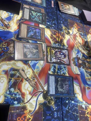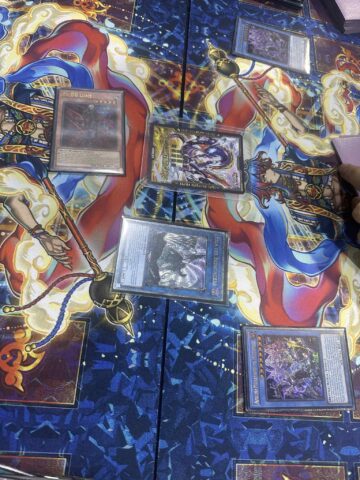 Rong won the die roll and chose to go first! He started by activating Pot of Extravagance, banishing 6 cards from his Extra Deck, but VanTull Chained the effect of Ash Blossom & Joyous Spring! Afterwards, VanTull activated Triple Tactics Talent, looking at VanTull’s hand and returning Case back to the Deck. Rong then Normal Summoned Mitsurugi no Mikoto, Aramasa and searched for Ame no Habakiri no Mitsurugi, then activated Habakiri’s effect to Special Summon and Tribute Mitsurugi no Mikoto, Saji. He searched for Mitsurugi Prayers, then activated Mitsurugi Ritual, Special Summoning Ame no Habakiri no Mitsurugi from hand by Tributing Night Sword Serpent and Mitsurugi no Mikoto, Kusanagi from the Deck. He Special Summoned Night Sword Serpent and added Mitsurugi RItual back to hand, then used Night Sword and Aramasa to Xyz Summon Gallant Granite and search for Nibiru, the Primal Being.