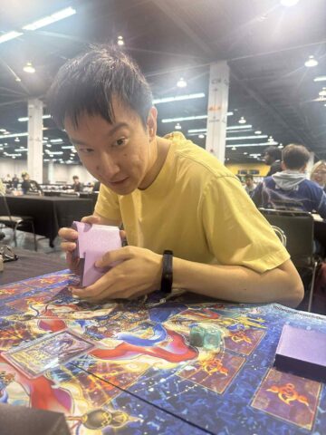 We’re almost at the end of Day 1 here at YCS Anaheim! However, the Duelists are still competing, each of them hoping to earn enough points to make it to Day 2. For this round’s Feature Match, we have two Duelists that each carry an 6-1 record; Eion Joel VanTull playing the Vanquish Soul K9 Deck, and Tian Xiao Rong playing the Mitsurugi Deck. A win here will guarantee a spot on Day 2, so these Duelists will have to be at the top of their game to keep their competitive hopes alive!