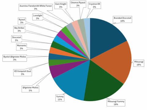 Mitsurugi and Yummy continue to be dominant at the Top Tables, taking up approximately half of the spots in the Top 20 Tables. However, Dracotail has proven to be a formidable contender, as well, with many players opting to incorporate the Branded cards to give the Deck additional ways to conduct Fusion Summons. Despite that, there are still a wide variety of Decks present, with Lunalight, Gem-Knight, Sky Striker, and Memento all performing well. Any one of them could win YCS Anaheim, so be sure to keep an eye on the coverage tomorrow and follow along!