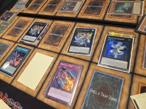 Kawar drew Swen. In the Draw Phase, he played Flashing Fire targeting Magnifica. Yang Chained Magnifica’s effect to tag out, and Kawar Chained Freezing Curses – Yang flipped Solemn Judgment! Magnifica brought in Mikailis in its place. Kawar played Chant to add Mystical Space Typhoon to his hand, but Yang had Dragon’s Mind to negate that. Kawar played Runick Tip, adding Slumber to his hand. He finally left his Draw Phase, and activated Pot of Greed! He drew Krosea and Flashing Fire. He activated Slumber on Mikailis, then Special Summoned Krosea. Krosea’s effect put Mystical Space Typhoon and Radiant Typhoon Vision in his hand. He played Mystical Space Typhoon to destroy a Cosmic Cyclone. He Special Summoned Swen, adding a Chant to his hand. He played Chant, getting Eldam. He Special Summoned Eldam, which put a new Krosea in his hand. Yang then used Mikailis to banish Eldam. Kawar played Vision, drawing Freezing Curses and Pot of Greed, discarding Curses. He played Pot of Greed! He drew Lava Golem and Tip. He Set Tip and Flashing Fire.
