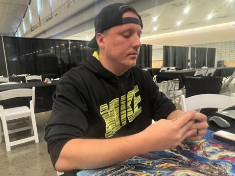 David Stolhanske from Minneapolis, Minnesota is competing in his first-ever YCS this weekend. He’s using a Mitsurugi Yummy Deck, which is a popular Deck for the tournament. Now, he’s facing off against Marc Routhier from Quebec in this Round 1 Feature Match! Routhier is using a Solfachord Yummy Deck. Routhier says he chose to use Solfachord cards instead of Mitsurugi cards because he believes that his Solfachord variant of a Yummy Deck is less vulnerable to cards like Nibiru, the Primal Being and Droll & Lock Bird, and is more consistent at achieving its goal. Routhier believes he sacrificed power for consistency by choosing to use Solfachord cards instead of Mitsurugi cards, but will it pay off? We’re about to find out. It’s time to Duel!