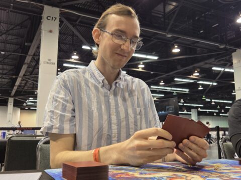 Round 2 has begun, and we’re back with another Feature Match! Hailing from Spanish Fork, Utah, we have Bryant Salcedo with a Branded Dracotail Deck. He’s facing Jeremy Leishman, from Gilbert, Arizona, using Orcust.