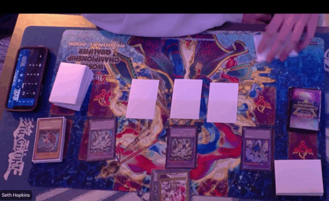 Hopkins started off the first Duel by activating Branded Fusion! He sent Fallen of Albaz and Dracotail Phryxul from his Deck to his Graveyard to Special Summon Albion the Branded Dragon. He used the effects of Phryxul and Albion as Chain Links 1 and 2. He used Albion’s effect to banish the Albion on his field and the Fallen of Albaz from his Graveyard to Special Summon Lubellion the Searing Dragon and then used Phryxul’s effect to Set Rahu Dracotail from his Deck to his field. Next, he activated Lubellion’s effect in a new Chain by discarding Mulcharmy Fuwalos. He returned Albaz and Albion from banishment to his Deck to Special Summon Mirrorjade the Ice Blade Dragon. He activated Ketu Dracotail next, and added Dracotail Lukias from his Deck to his hand. He Normal Summoned it and then activated its effect to add Dracotail Faimena from his Deck to his hand. He activated Faimena’s effect by discarding it to fuse Lukias and Lubellion on his field and Summon Secreterion Dragon, then used Lukias’s effect to Set Dracotail Flame from his Deck to his field. Next, he activated Secreterion Dragon’s effect. He Special Summoned Phryxul by returning Lubellion to his Extra Deck and used Phryxul’s effect on the field to Special Summon Faimena back from his Graveyard and return Faimena to his hand. Next, he activated Rahu Dracotail. He sent Faimena from his hand and Dracotail Urgula from his Deck to his Graveyard to Special Summon Dracotail Gulamel. He used the effects of Faimena and Urgula to Set Dracotail Sting and Dracotail Horn from his Deck to his back row and then used the effect of the Urgula in his Graveyard. He returned Urgula to his Deck and added Faimena back to his hand from the Graveyard. He ended his turn.
