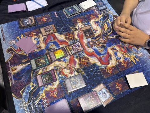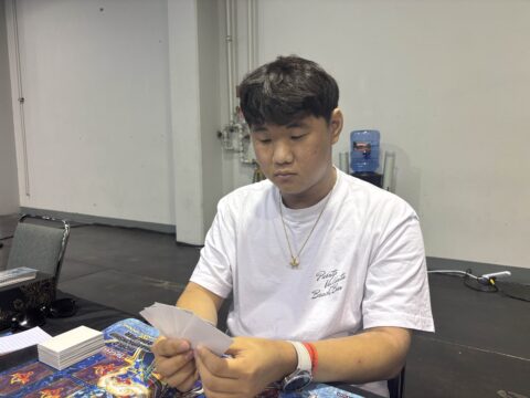 Nguyen had Lukias attack over Shizuku. Kim activated Raye’s effect, Nguyen tried to attack Raye with Gulamel, but Kim activated Raye’s effect to Special Summon Sky Striker Ace = Zero. Kim activated Zero’s effect and Special Summoned Raye and Roze from his Deck and destroyed Nguyen’s Dark Magician. Nguyen continued to attack with Gulamel over the Raye, then his other Gulamel over Roze, and finally Secretarion Dragon attacked directly for 2900. Nguyen ended his turn after that.
