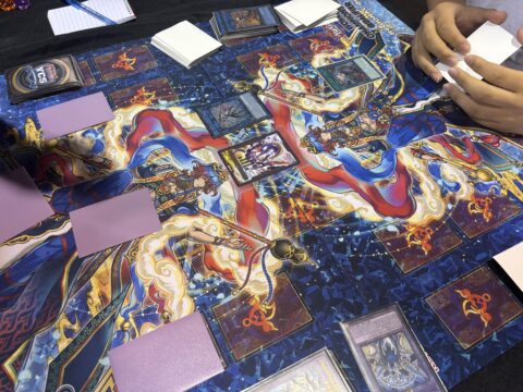 Kim activated his third copy of Sky Striker Mobilize – Engage! He added another Lemnisgate and drew another card. Kim activated Lemnisgate and targeted Engage and Raye. He shuffled them back into the deck, then looked at his hand to figure out his next play.