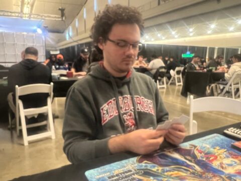 Nicolas Ortiz from Tampa, Florida took third place at YCS Fort Worth in 2019 and has been trying to break his personal record ever since. Now, he’s here at YCS Pittsburgh with his Sky Striker Deck, looking for a YCS trophy. His opponent, Logan Johnson from Seattle, Washington took second place a few years ago at YCS Indianapolis, and like Ortiz, he’s trying to do better than he ever has before. Johnson is using a Branded Dracotail Deck featuring The Fallen & The Virtuous, which was just released in THE CHRONICLES DECK: The Fallen & The Virtuous (All-Foil Edition). Ortiz and Johnson both have 4-0 records and are now paired against one another in this Round 5 Feature Match! It’s time to Duel!