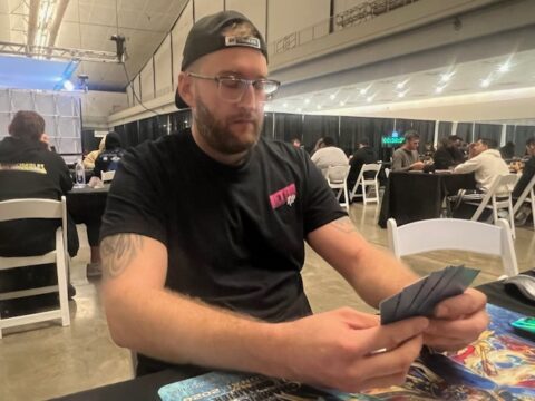 Schultz drew Onomatopaira and then banished Onomatokage from his Graveyard to return Vallon and Duo Drive from his Graveyard to his Extra Deck. He Special Summoned Ext Ryzeal from his hand next by sending Vallon from his Extra Deck to his Graveyard. He used Vallon’s effect to destroy Dracotail Flame and used Ext’s effect to add Sword Ryzeal from his Deck to his hand. He Special Summoned the Sword and used its effect to add Ice Ryzeal from his Deck to his hand. Next, he activated Onomatopaira by discarding Ice from his hand and he added Dodododo Warrior and Gagaga Ganbara Knight from his Deck to his hand. He Special Summoned the Warrior from his hand by sending Onomatokage from his Deck to his Graveyard and then Special Summoned Onomatokage from his Graveyard. He Special Summoned Dodododwarf Gogogoglove from his Graveyard next and then combined his Warrior with Gogogoglove to Xyz Summon Gagagaga Girl. Pinto activated The Fallen & The Virtuous by targeting the Gagagaga Girl and sending Titaniklad the Ash Dragon from his Extra Deck to his Graveyard, destroying Gagagaga Girl. Next, Schultz returned his banished Detonator to the Extra Deck to Special Summon Nemeses Flag from his hand and used the Flag’s effect to add Archnemeses Eschatos from his Deck to his hand. He combined Sword with Ext to Xyz Summon Ryzeal Detonator next. He activated its effect to attach Eclipse Twins to it as an Xyz Material, and Pinto conceded.