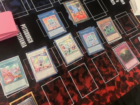 Luis drew Nibiru, the Primal Being and added it to his hand of Triple Tactics Talent, Cooky☆Yummy, and Yummy☆Surprise. He Summoned the Droll & Lock Bird and Michael used Snatchy’s effect to Tune Snatchy with Cupsy and Synchro Summon Cooky★Yummy Way. He used Cooky’s effect to put Droll & Lock Bird face-down. Next, Luis activated Triple Tactics Talent, but Michael negated its activation by Tributing Herald of the Arc Light. He used the Herald’s effect to add Habakiri from his Deck to his hand. Luis Set a card to his back row and then entered his End Phase. In the End Phase, Michael flipped Yummy☆Surprise to Special Summon Cupsy☆Yummy from his Graveyard and used Cupsy’s effect to add Marshmao from his Deck to his hand.