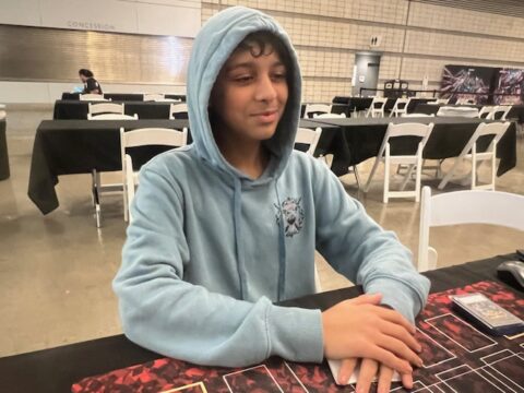 Michael M. from Washington, D.C. and Luis H. from Texas were the winners of this weekend’s Dragon Duel tournaments for young Duelists. Michael won today’s tournament, and Luis won yesterday’s event. As a result, they earned the honor of facing off against one another today in a Match that will determine the ultimate Dragon Duel Champion of the weekend. Michael is using a Mitsurugi Yummy Deck and Luis is using a Yummy Deck without the Mitsurugi cards. It’s time to Duel!